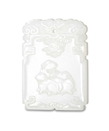 White Jade Carved with the Rebus of a Rooster standing on the Rock for Auspiciousness